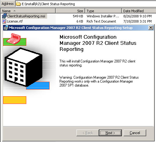Для этого нужно установить Client Status Reporting. Минимальные требования — SCCM 2007 R2. Инсталляционные файлы находятся в папке с R2. Запускаем msi: