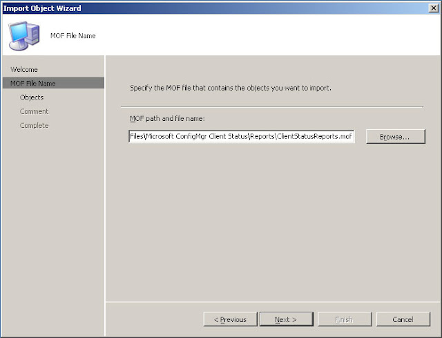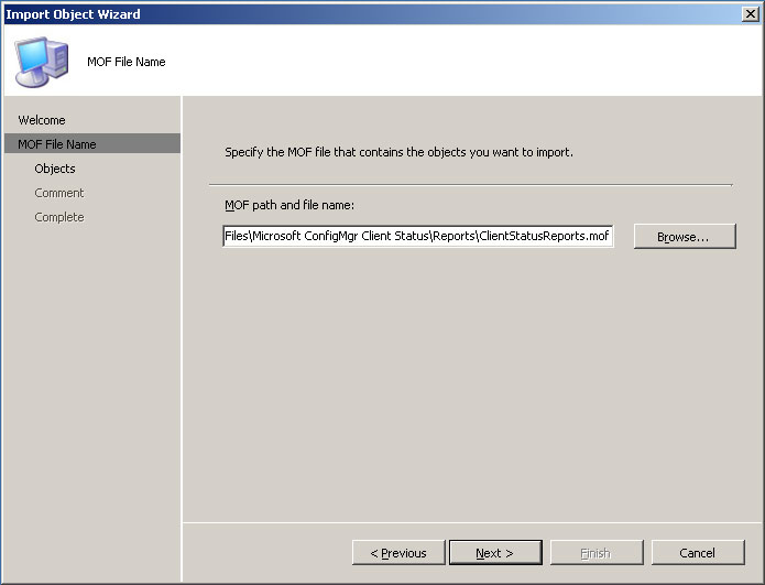 Открываем консоль SCCM, Reporting — Reports — правый клик — Import Objects, выбираем ClientStatusReports.mof, который лежит в C:\ProgramFiles\Microsoft ConfigMgr Client Status\Reports: